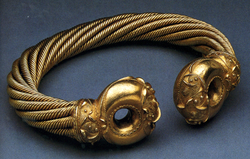 healsbēag Posted on March 14, 2014 by Hana Videen healsbēag, m.n: necklace, neck-ring, torque. (HEH-alz-BAY-ahg / ˈhɛalz-ˌbeːag) The Great Torque, from Snettisham, Norfolk. Made of eight ropes twisted together, each rope made of eight strands of gold. Share this:Share Email a link to a friend (Opens in new window) Email Share on Facebook (Opens in new window) Facebook Share on X (Opens in new window) X Share on Tumblr (Opens in new window) Tumblr Like Loading... Related