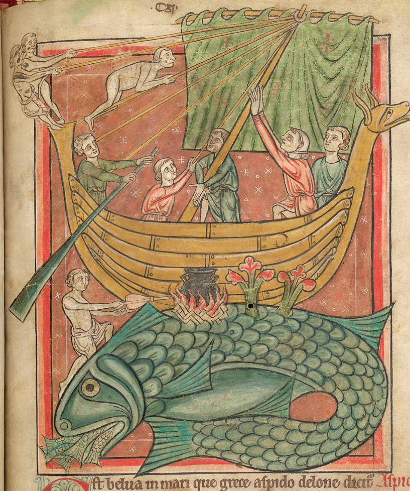 ēa-land Posted on July 22, 2014 by Hana Videen ēa-land, n.n: island. (AY-ah-LOND / ˈeːa-ˌland) A ship landing on a whale mistaken for an island in an early thirteenth century bestiary. British Library, Harley MS 4751, f. 69r. [bl.uk] Share this:Share Click to email a link to a friend (Opens in new window) Email Click to share on Facebook (Opens in new window) Facebook Click to share on X (Opens in new window) X Click to share on Tumblr (Opens in new window) Tumblr Like Loading... Related