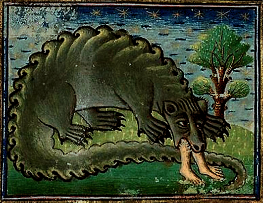 hungor Posted on February 10, 2015 by Hana Videen hungor, m.n: hunger, famine. (HUNG-gor / ˈhʌŋ-gɔr) Bestiarium. W France, c. 1450. Museum Meermanno, MMW, 10 B 25, f. 12v. [bestiary.ca] Share this:Share Click to email a link to a friend (Opens in new window) Email Click to share on Facebook (Opens in new window) Facebook Click to share on X (Opens in new window) X Click to share on Tumblr (Opens in new window) Tumblr Like Loading... Related
