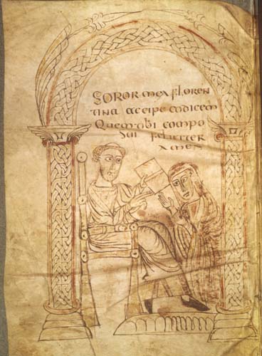 sweostor Posted on December 9, 2015 by Hana Videen sweostor, f.n: sister. (SWEH-ost-or / ˈswɛɔ-stɔɹ) Isidore of Seville giving a book to his sister Florentine. Paris, Bibliothèque nationale, ms. 7138 lat. 13396, f. 1v. Share this:Share Email a link to a friend (Opens in new window) Email Share on Facebook (Opens in new window) Facebook Share on X (Opens in new window) X Share on Tumblr (Opens in new window) Tumblr Like Loading... Related