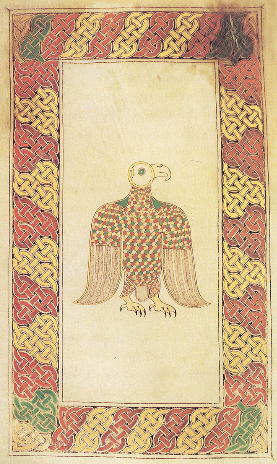 earn Posted on November 7, 2019 by Hana Videen earn, m.n: eagle. (EH-arn / ˈɛarn) Book of Durrow. Durrow Abbey, Ireland, or Northumbria, England, 650-675. Library of Trinity College Dublin, MS 57, f. 84v. [codex99.com] Share this:Share Click to email a link to a friend (Opens in new window) Email Click to share on Facebook (Opens in new window) Facebook Click to share on X (Opens in new window) X Click to share on Tumblr (Opens in new window) Tumblr Like Loading... Related