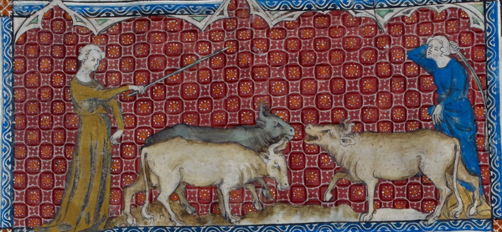 hrīðer-heord Posted on November 14, 2019 by Hana Videen hrīðer-heord, f.n: a herd of cattle. (HREE-ther-HAY-ord) Queen Mary Psalter. England (London or East Anglia), 1310-1320. British Library, Royal 2 B VII, f. 75r. [bl.uk] Share this:Share Click to email a link to a friend (Opens in new window) Email Click to share on Facebook (Opens in new window) Facebook Click to share on X (Opens in new window) X Click to share on Tumblr (Opens in new window) Tumblr Like Loading... Related