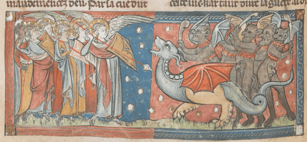 wīg Posted on February 25, 2020 by Hana Videen wīg, n.n: fight, battle, war, conflict. (WEE) Apocalypse. England (London?), early 14th century. British Library, Add MS 38842, f. 3v. [bl.uk] Share this:Share Email a link to a friend (Opens in new window) Email Share on Facebook (Opens in new window) Facebook Share on X (Opens in new window) X Share on Tumblr (Opens in new window) Tumblr Like Loading... Related