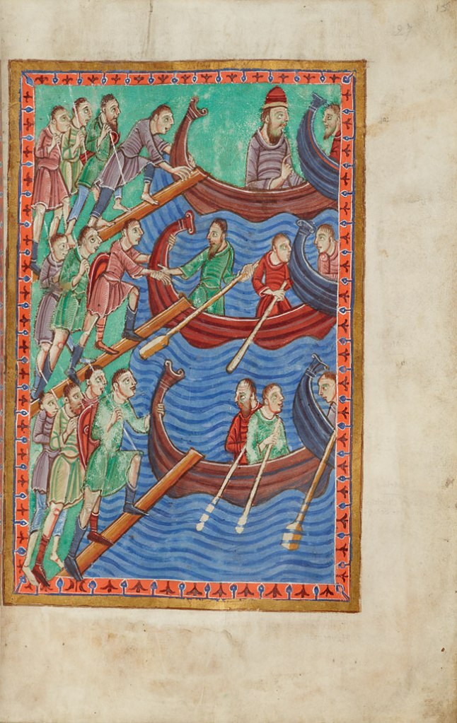 sǣ-land Posted on May 31, 2020 by Hana Videen sǣ-land, n.n: a maritime district. (SAE-LAHND / ˈsæː-ˌland) Edmund and departing Danes in Passio Edmundi, illustrated by Abbo of Fleury. England (Bury St Edmunds), c. 1130. Morgan Library & Museum, MS M.736, f. 15r. [ica.themorgan.org] Share this:Share Click to email a link to a friend (Opens in new window) Email Click to share on Facebook (Opens in new window) Facebook Click to share on X (Opens in new window) X Click to share on Tumblr (Opens in new window) Tumblr Like Loading... Related