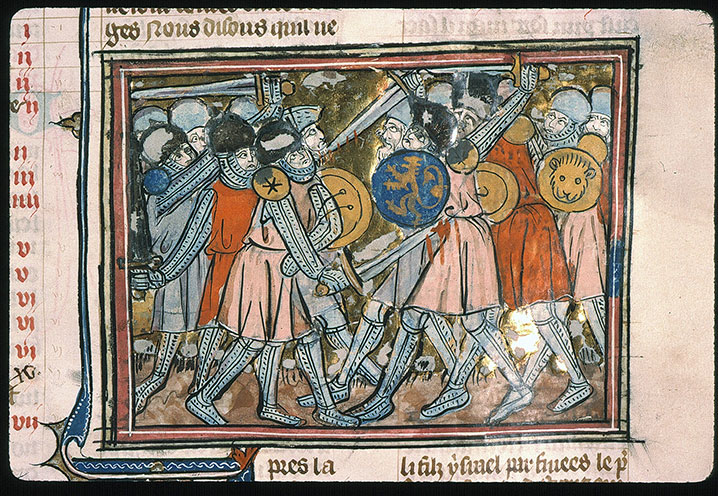 ge-sceldod Posted on July 28, 2020 by Hana Videen ge-sceldod, adj(v.part): provided with a shield. (yeh-SHELL-dod / jɛ-ˈʃɛl-dɔd) Bible Historiale. France, 1320-1337. Bibliothèque Sainte-Geneviève, MS 20, f. 123r. [enluminures.culture.fr] Share this:Share Email a link to a friend (Opens in new window) Email Share on Facebook (Opens in new window) Facebook Share on X (Opens in new window) X Share on Tumblr (Opens in new window) Tumblr Like Loading... Related