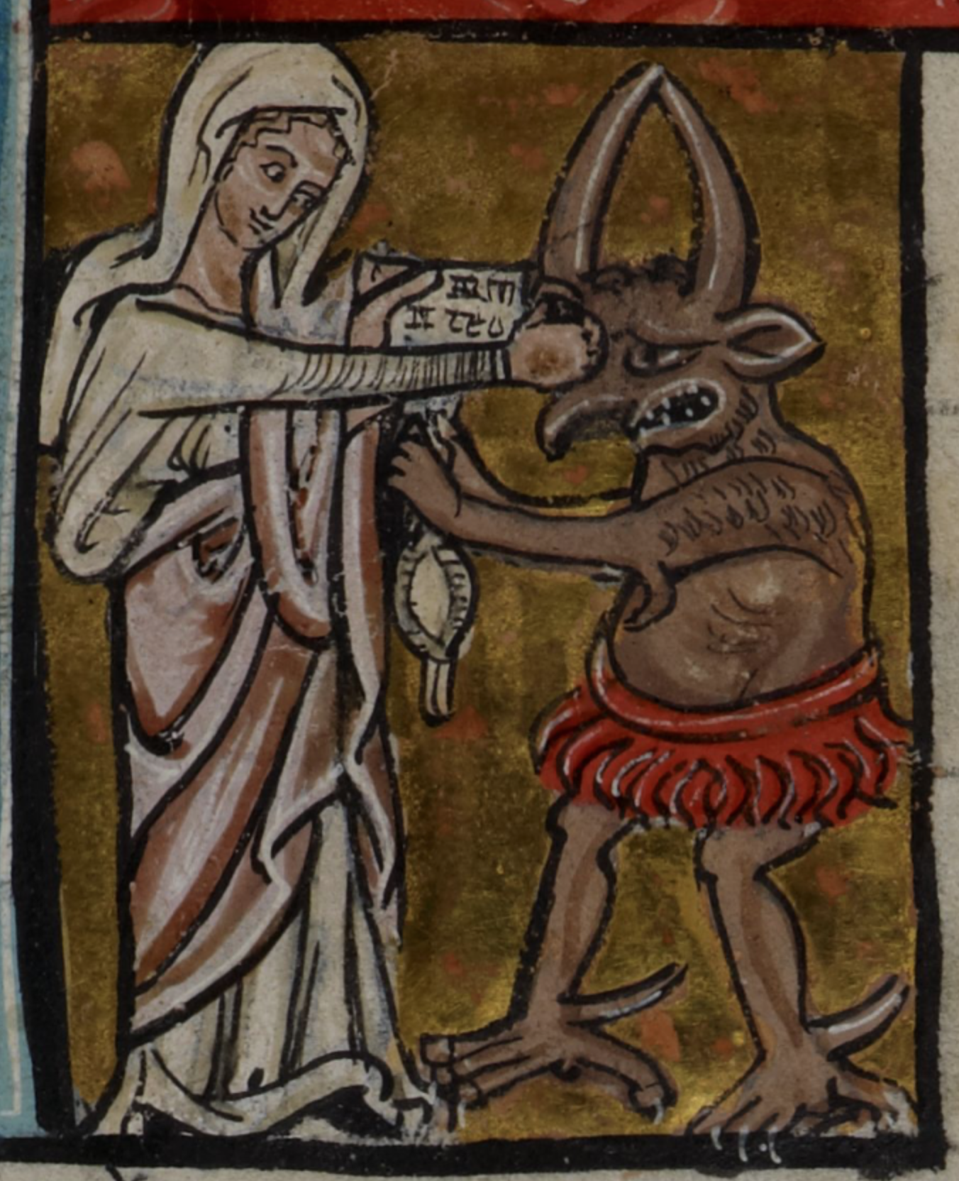 wīf-mann Posted on March 8, 2022 by Hana Videen wīf-mann, m.n: woman. (WEEV-mahn / ˈwiːv-man) Virgin Mary striking the Devil in the De Brailes Hours; England (Oxford), c. 1240; British Library, Add MS 49999, f. 40v. [bl.uk] Share this:Share Click to email a link to a friend (Opens in new window) Email Click to share on Facebook (Opens in new window) Facebook Click to share on X (Opens in new window) X Click to share on Tumblr (Opens in new window) Tumblr Like Loading... Related