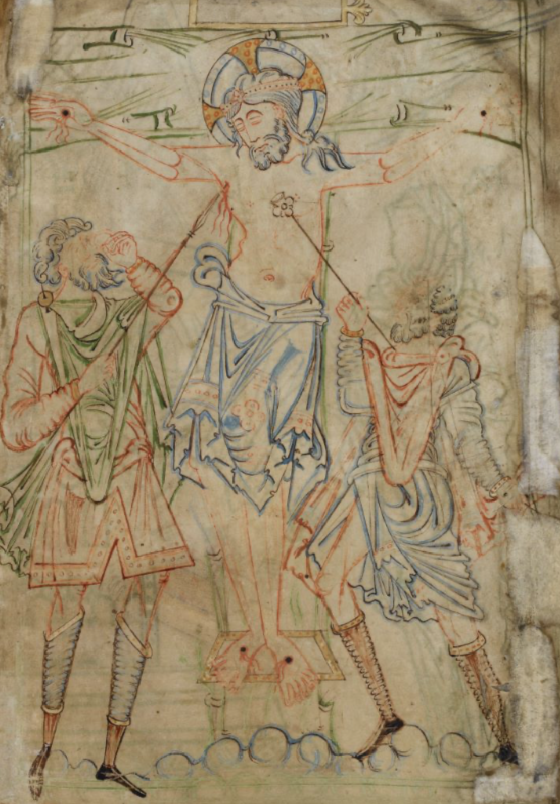 ge-blōt Posted on April 15, 2022 by Hana Videen ge-blōt, n.n: a sacrifice. (yeh-BLOAT / jɛ-ˈbloːt) Christ’s crucifixion in the Tiberius Psalter; England (Winchester), 11th century; British Library, Cotton MS Tiberius C VI, f. 13r. [bl.uk] Share this:Share Email a link to a friend (Opens in new window) Email Share on Facebook (Opens in new window) Facebook Share on X (Opens in new window) X Share on Tumblr (Opens in new window) Tumblr Like Loading... Related