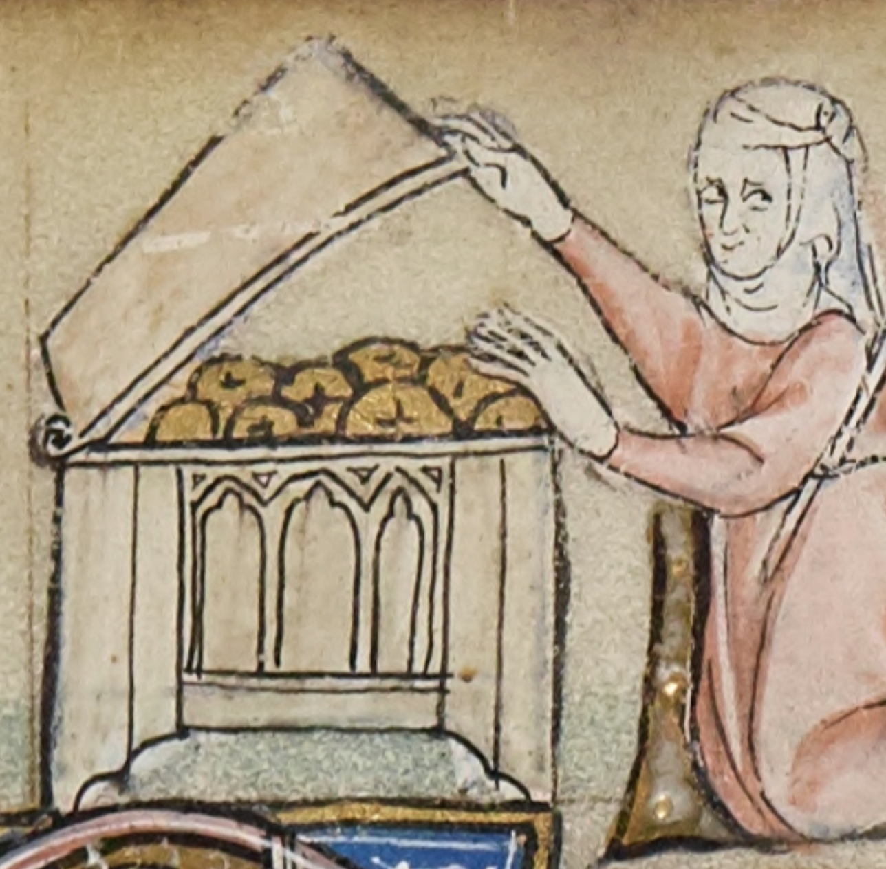 hord-fæt Posted on February 12, 2023 by Hana Videen hord-fæt, n.n: vessel or container for holding treasure. (HORD-VAT / ˈhɔrd-ˌvæt) Book of Hours; Flemish, early 14th century; Cambridge, Trinity College Library, MS B.11.22, f. 213r. [mss-cat.trin.cam.ac.uk] Share this:Share Click to email a link to a friend (Opens in new window) Email Click to share on Facebook (Opens in new window) Facebook Click to share on X (Opens in new window) X Click to share on Tumblr (Opens in new window) Tumblr Like Loading... Related