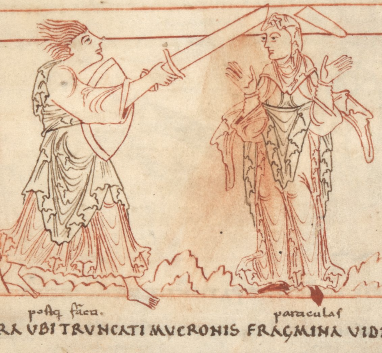 wēamōdness Posted on September 21, 2023 by Hana Videen wēamōdness, f.n: anger. (WAY-ah-MOAD-ness / ˈweːa-ˌmoːd-nɛs) Anger’s sword breaks when used against Patience in Prudentius’ Psychomachia; England, 10th/11th century; British Library, Cotton MS Cleopatra C VIII, f. 12r. [bl.uk] Share this:Share Click to email a link to a friend (Opens in new window) Email Click to share on Facebook (Opens in new window) Facebook Click to share on X (Opens in new window) X Click to share on Tumblr (Opens in new window) Tumblr Like Loading... Related