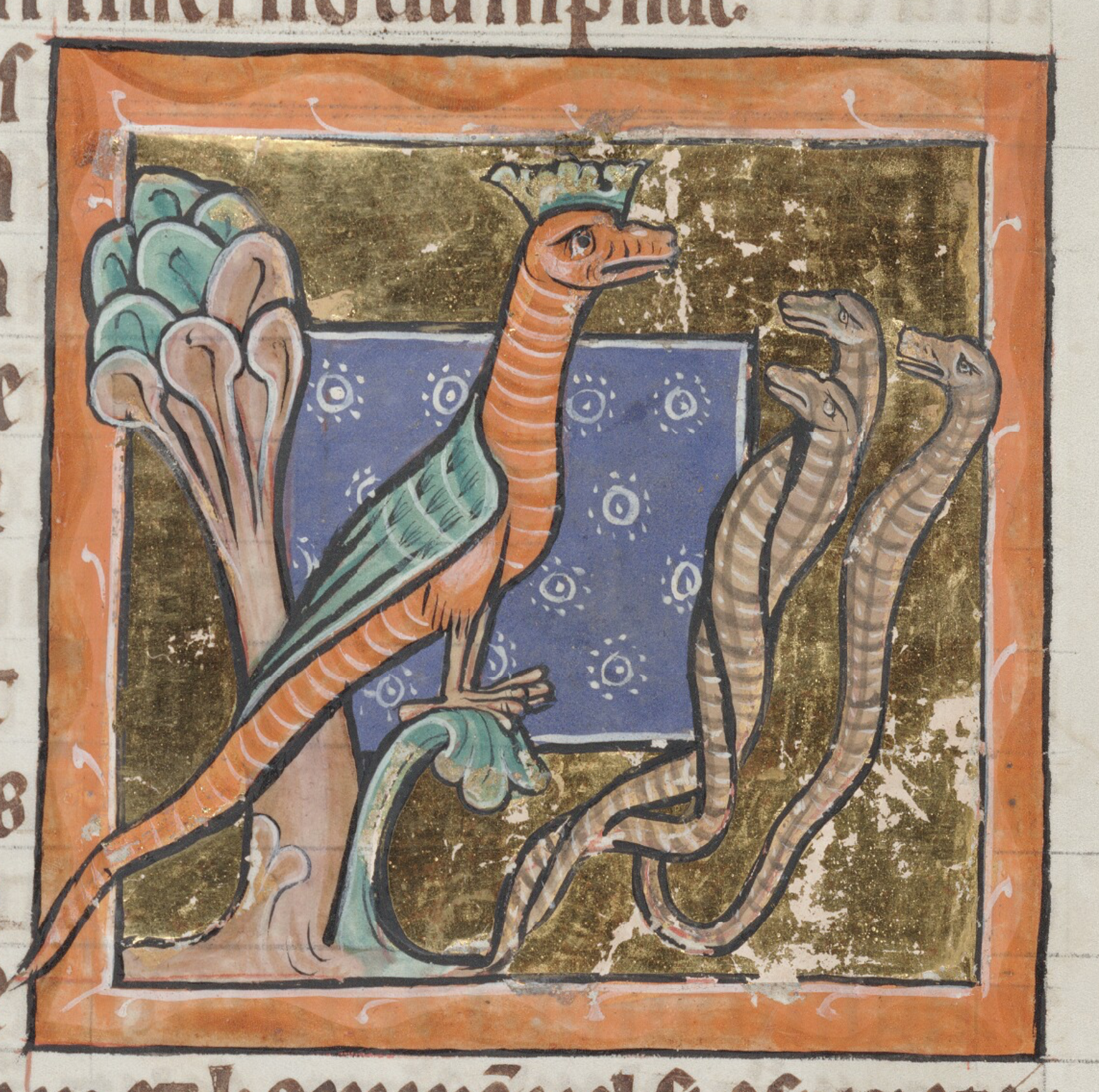 basilisca Posted on January 12, 2024 by Hana Videen basilisca, m.n: basilisk. (BA-zih-liss-ka / ˈba-zɪ-lis-ka) Bestiary; England, 1226-1250; Bodleian Library, MS. Bodl. 764, f. 93v. [digital.bodleian.ox.ac.uk] Share this:Share Click to email a link to a friend (Opens in new window) Email Click to share on Facebook (Opens in new window) Facebook Click to share on X (Opens in new window) X Click to share on Tumblr (Opens in new window) Tumblr Like Loading... Related
