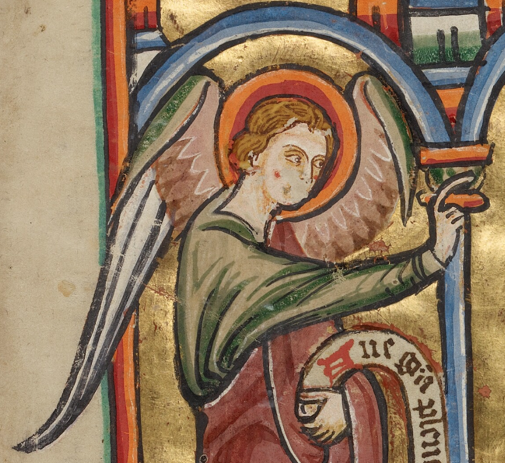 engel Posted on January 14, 2024 by Hana Videen engel, m.n: angel. (ENG-gell / ˈɛŋ-gɛl) Illustrated Vita Christi; England, 1190-1200; Getty Museum, Ms. 101, f. 26r. [getty.edu] Share this:Share Click to email a link to a friend (Opens in new window) Email Click to share on Facebook (Opens in new window) Facebook Click to share on X (Opens in new window) X Click to share on Tumblr (Opens in new window) Tumblr Like Loading... Related