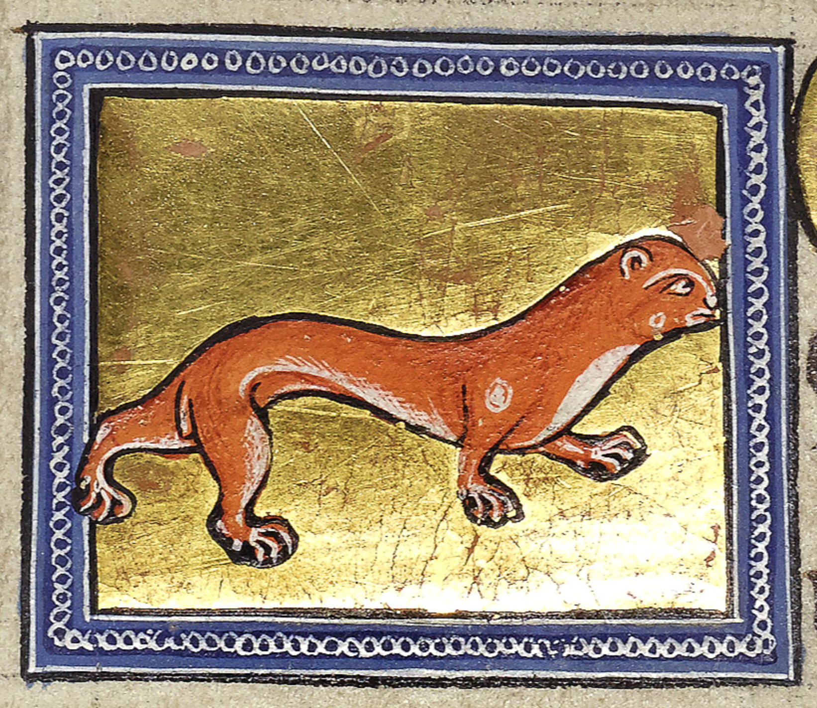wesle Posted on May 31, 2024 by Hana Videen wesle, f.n: weasel. (WEZ-luh / ˈwɛz-lə) Aberdeen Bestiary; England, c. 1200; Aberdeen University Library, MS 24, f. 23v. [abdn.ac.uk] Share this:Share Click to email a link to a friend (Opens in new window) Email Click to share on Facebook (Opens in new window) Facebook Click to share on X (Opens in new window) X Click to share on Tumblr (Opens in new window) Tumblr Like Loading... Related