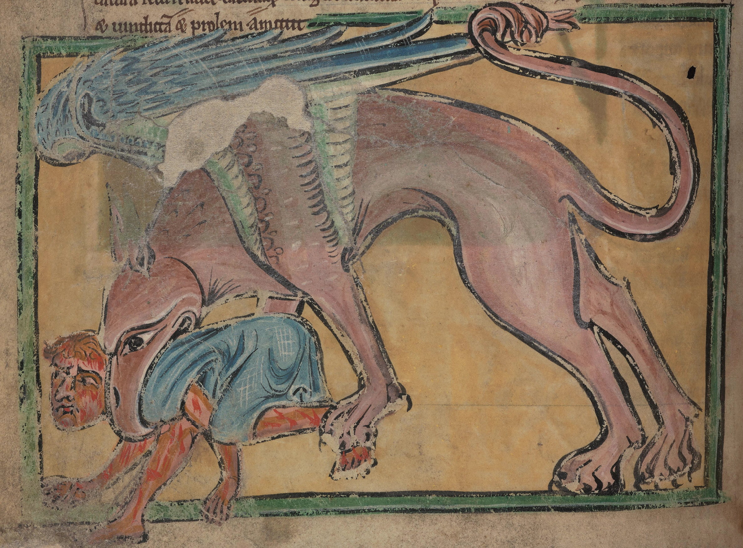atel Posted on November 8, 2025 by Hana Videen atel, adj: dire, terrible. (AH-tell / ˈa-tɛl) Bestiary from a didactic miscellany; England, 1220-1240; Cambridge University Library, Kk.4.25, f. 67v. [cudl.lib.cam.ac.uk] Share this:Share Click to email a link to a friend (Opens in new window) Email Click to share on Facebook (Opens in new window) Facebook Click to share on X (Opens in new window) X Click to share on Tumblr (Opens in new window) Tumblr Like Loading... Related