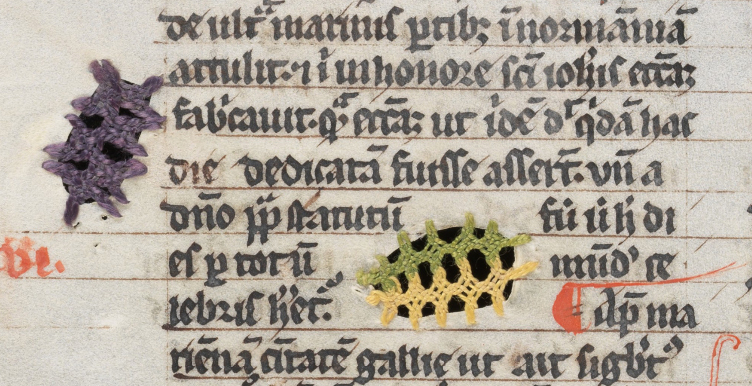 masc Posted on November 13, 2025 by Hana Videen masc, n.n: a mesh, net. (MAWSH / ˈmaʃ) Jacobus de Voragine, Legenda Aurea; Interlaken (?), 14th century; Freiburg, Bibliothèque cantonale et universitaire, Ms. L 34, f. 246v. [e-codices.unifr.ch] Share this:Share Click to email a link to a friend (Opens in new window) Email Click to share on Facebook (Opens in new window) Facebook Click to share on X (Opens in new window) X Click to share on Tumblr (Opens in new window) Tumblr Like Loading... Related